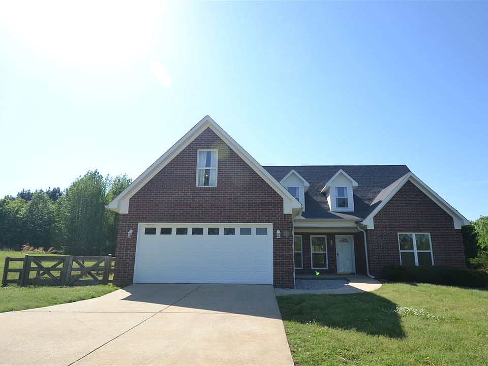 This home has fresh paint & carpet*gleaming hardwood floors*Over an acre! 4 bedrooms w/ 3 bedrooms down & split bedroom floorplan*2 bathrooms including Master Bathroom w/ whirlpool tub, separate shower & his/her sinks*large Living Room w/ hardwood flooring & gas fireplace* covered patio overlooking fenced yard w/ storage shed*laundry room with cabinetry*spacious kitchen overlooking backyard*maintenance free exterior w/ brick & vinyl*alarm system*architectural shingle*100% Financing available