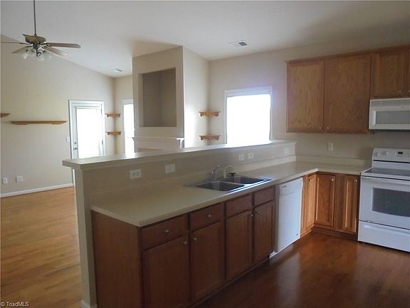 Inviting one story home with 3 bedrooms, 2 full baths and a double garage....very open floorplan with the kitchen open to the living room.....laminate floors thru-out much of the house, carpet in the bedrooms....the impressive master suite boasts 2 closets, a garden tub and separate shower.....great location just minutes from I-40, shopping, and schools.....