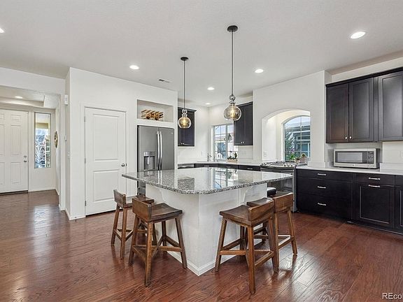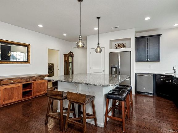 Welcoming Erie Highlands home with a quaint front porch and new landscaping. Inside upgrades include quartz counters and a gas stove in the kitchen, hardwood flooring, fresh paint, and a covered back patio with outdoor speakers. There are two bedrooms on the main, including the primary with a relaxing sitting area. Upstairs is another bedroom and bath plus a smart space–a sunny den or home office. Within the St. Vrain Valley School District and close to the community pool. Come take a look!
