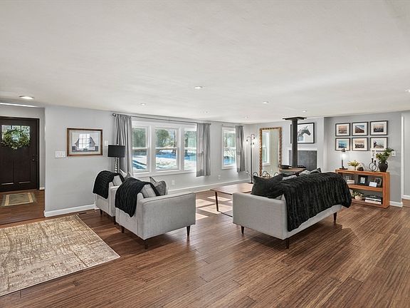 New Price!! Discover unparalleled privacy on over 7 sprawling acres direct river access. This meticulously renovated & expanded home offers a true haven. Enter inside to a stunning 1st floor featuring a gourmet kitchen w/breakfast bar & SS appliances—complete w/ a walk-in pantry. The open-concept layout flows seamlessly into the dining room w/ sitting area & living room w/wood stove. French doors lead to the outdoor deck, filling the space w/ an abundance of natural light. Rich HW & bamboo flooring extend throughout. A short hallway leads to a home office, full bath & versatile den. Upstairs, HW floors & recessed lighting continue throughout, leading to the luxurious primary suite w/ private bath & 2 walk-in closets. Family room w/ a vaulted ceiling & scenic views, 2 addit'l bedrooms & full bath complete this level. Enjoy acres of your own private paradise to include fishing, kayaking, hiking, and picnics by the historic blackstone canal!