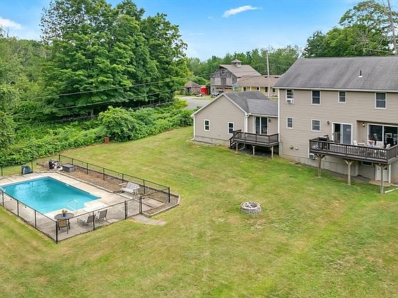 If rustic country charm is your style, you will love this spacious 4 bed, 2.5 bath center entrance Garrison Colonial w/ 3 levels of finished living space. Located on a lovely country road, corner lot, 1.17 acres, and lined by stone walls. This welcoming home has a vaulted, beamed, tiled, breezeway with access to garage, side entry and back deck. Country eat-in tiled kitchen with corian, ss, and island with access to the larger deck. Dining area with hardwoods. Front to back living room with beams, pellet stove, brick surround, hardwoods, and slider to large deck. First floor laundry in half bath. Upstairs has 4 large corner bedrooms, lots of closet space, & a full bath w/ double sinks The finished walkout lower level is a perfect spot for entertaining. New Pellet stove, built in wet bar, and a 3/4 bath. The lot is cleared & beautiful. In-ground pool. 2 car attached garage w/ storage space above. Well rated schools. Close proximity to Wells State Park & area amenities.