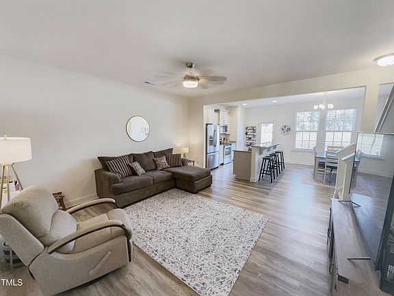 All kitchen appliances, washer/dryer, sofa, new fire pit, patio furniture all convey! Beautifully maintained 3 bedroom-2.5 bathroom townhouse in the popular Cleveland Springs neighborhood. LVP flooring throughout main floor. Open floor plan with lots of natural light. Enter into the foyer through the garage or front door, where you'll find a large coat closet, with a half bath in the hall. Living, dining, and kitchen areas flow nicely. Stainless appliances and beautiful granite countertops in the kitchen. Off the kitchen is a concrete patio and a storage closet that is great for outdoor and seasonal items. Upstairs is the primary bedroom with sitting area, large walk-in closet, and en-suite bathroom with double vanity, garden tub, and shower stall. Laundry off the hallway, as well as a linen closet and another full bathroom. 2 more bedrooms of great size complete the upstairs. All bedrooms plus the living room have ceiling fans and dimmable overhead lights (remotes for all lights and fans). HOA covers yard maintenance (mowing front and back as well as regular leaf blowing), front landscaping, pest control, roads, pool and playground, as well as a pickle ball court off the open grassy area behind the home. The pool is located near the entrance of the Cleveland Springs neighborhood. Directions from townhouse to pool are here: https://maps.app.goo.gl/rsS6dvRP2eaRRLyB8. HOA Also includes exterior power washing and pest control. Quick access to 40, restaurants and shopping; 15 minutes to o downtown Raleigh but with Johnston County taxes! Single owner, well maintained, great neighbors. Welcome home!