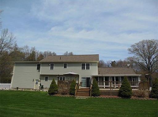 Absolutely stunning inside & out in this marvelous 9 Room, 4 Bedroom, 2.5 Bath Colonial w/2 Car Attached Garage situated on a picturesque & fenced in 34,792 square foot lot built in 2001. A country setting for this fine Home offers an open layout w/hardwood flrs, inviting Dining Rm w/Wainscoting & Crown Molding, lovely Living Rm, Office or 5th Bedrm w/Closet, stylish expansive Kitchen w/NEW Granite Counters, dining area,Center Island,SS Appliances & Sliders to large Deck, huge sunken Great Room w/Floor to Ceiling Stone Gas Fireplace, Cathedral Ceiling & French drs to Newer 3 Season Room w/Hot Tub overlooks the manicured backyard w/Mature Plantings & 1st Floor Laundry. 2nd Floor boasts luxury Master Bedroom w/ Walk-In Closet w/Custom Closet Shelves, Full Bath w/Jet Tub & Shower along w/Ceiling Fan. 3 additional spacious Bedrms & Full Bathrm w/Tile Flr. 2 Gas Furnaces & 2 Central Air Units, Security System, 2 Large Sheds (1 could be used as small Garage)So much More!