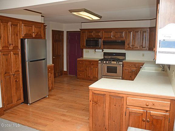 Now is your chance to live your dreams. This picturesque home boasts a tranquil setting on 27.7 ac with all the requirements for your livestock, chickens, goats or other farm animals. The barn has separate stalls and doors leading to a fenced area. Plenty of space to grow your own produce. The lot on the side is hayed by a neighbor but you get the tax benefits. The house is a four bedroom, the expanded attic provides plenty of storage and bonus room over the garage is great for family. The basement has a second kitchen so that you can cook and bake for the family gathering and not run out of space. The classic front porch provides a location to relax when the work is done with great views of the valley.