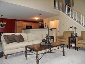 2 Story Open Floor Plan Condo with 2-car garage. The Great Room has a Gas Log Fireplace, skylights, and loads of natural light and is open the kitchen/Dining areas. Two Bedroom Suites with private baths. Owner's bath has a double vanity, garden tub, and large walk-in closet with closet organizers. Finished lower level has egress windows, hardwood flooring, and great storage. 2nd Floor Laundry Room with tub sink and new flooring. Large deck that overlooks wooded, ravine lot with stream. New Garage Door Opener. Great location-just blocks from Uptown Westerville, walking path, shopping, restaurants, and Recreation Center.