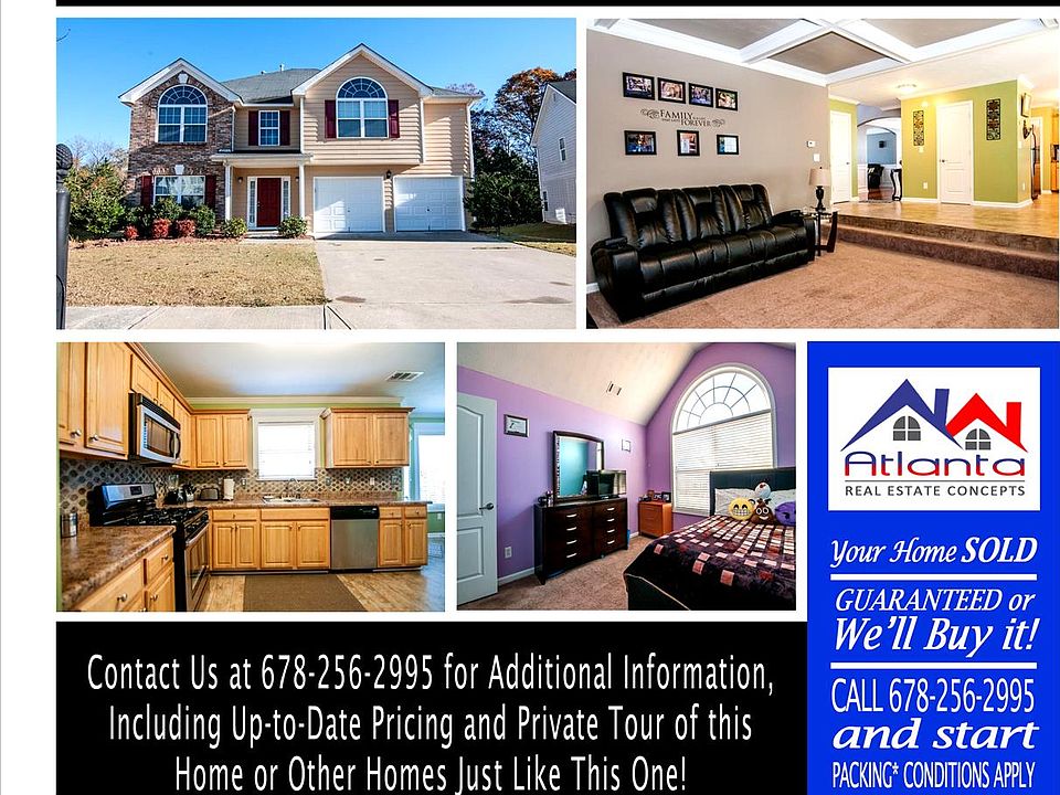Don't get stuck owning two homes. BUY THIS HOME, I WILL BUY YOURS! If you are looking to buy a home but have one to sell, you are finding yourself in the same dilemma that most homeowners find themselves in. We can help! To discuss the details of this incredible option, call Mayra Muret directly at 678-772-8585 or visit www.myteamhasthebuyers.com. Call me and I will tell you about our amazing offers. Buy This Home, and We'll Buy Yours! Call us! YOUR HOME SOLD GUARANTEED, OR I WILL BUY IT. That's right, if you list your home through me and it does not sell, I will buy it myself. To see more about my Guaranteed Sale Program, visit www.MyTeamhastheBuyers.com or call Mayra Muret direct at 678-772-8585. Reasonable conditions may apply. Seller and Mayra must agree on Price and terms. EVERYTHING YOUR CLIENT WANTS IN A HOME...hardwood floors on lower level and upstairs hallway, family room and four bedrooms, updated light fixtures downstairs and ceramic tile and backslash in kitchen. The master is enormous in size as well as the master bedroom closet, the master bathroom is where you want to be after a long day at work to relax and unwind in your corner tub with seat. The kitchen is a cooks delight, plenty of space. Sunken family rm. Home in sort after Alcovy Ridge subdivision.