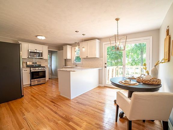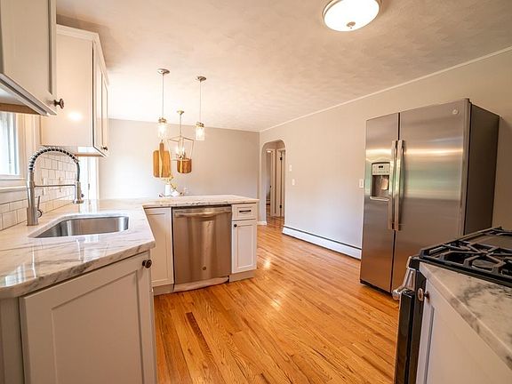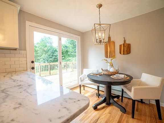 Beautifully updated Ranch. Gorgeous kitchen with wide rail shaker cabinets, marble counters, stainless steel appliances and subway tiled back splash. Kitchen has glass doors to a private deck overlooking the back yard. Updated bath with custom tile and new vanity, refinished hardwood floors throughout. Updated plumbing and electrical, vinyl siding and replacement windows. This charming ranch is located across from the scenic river road walking/bike path and conveniently located close to all area amenities.