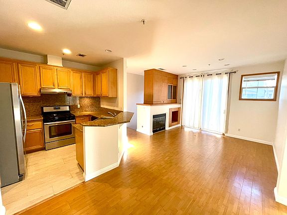 Quiet end unit condo with balcony in a gated community - Altura . Spa, swimming pool and gym available at community center. Laminated floor in living, dinning and bedrooms area. Cozy fireplace in living room. 1 car direct access garage and 1 street parking with permit ( included) Kitchen with granite countertop and stainless steel appliances. Refrigerator included. Laundry room is on first level. 2bedrooms, 2bathrooms, living room, dinning room and kitchen are on 2nd level. Master bedroom suite with walk in closet. New Paint and new Hardwood Floor for bedrooms. Move in cost $2900 (1st Mon) + $2900 (Security Deposit) + $300 (Key Deposit) = $6100 by appointment Owner pays HOA