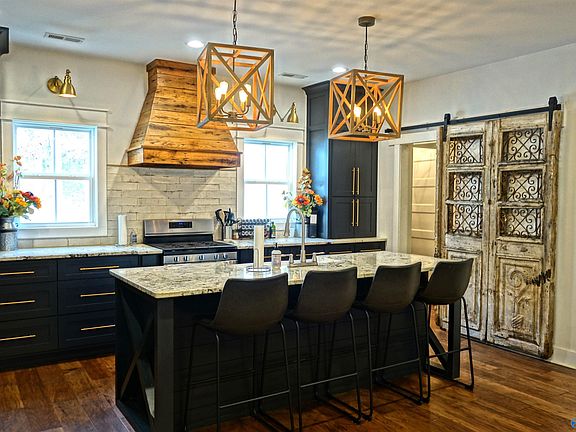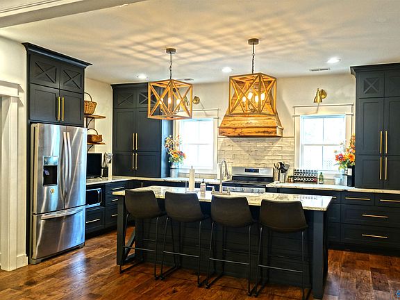 Lake Guntersville is just steps away from the backyard w/some views of the lake from the property. This custom built home boasts detail & elegance thru-out. Stunning open concept. Beautiful wood floors in the main living space & a living room ceiling that has that "WOW" affect. Owners suite is on the main level w/a wrap around walk-in closet & spa like bath w/a oversized shower & claw foot tub. Upstairs features a rec/family room, 3rd bedroom, & floored attic storage space. Enjoy a relaxing evening on the back patio w/an outdoor kitchen/grilling station. The community has a private boat ramp or Seibold boat launch is a mile away. Only minutes from Downtown GSV & City Harbor. Welcome home!