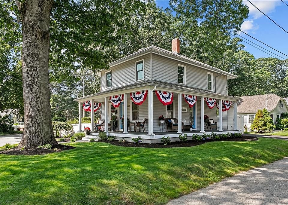 Come experience life on The Terrace! Surrounded on three sides by water, this neighborhood is a hidden gem. Seasonal water views from almost every room. Walk to your own private beach at the end of the street! Even though you feel like you are on a private island, you are less than 15 minutes to Providence. The first floor features open concept living with a large family room, kitchen, dining room with slider leading to your deck, and bonus office with laundry. Second floor features three bedrooms and brand new bath. Recently remodeled in 2022, everything is brand new - kitchen, bathrooms, roof, boiler, electrical panel, plumbing, trex decking, patio, driveway, appliances. All you have to do is move in! The front of the home features a beautiful farmers porch surrounded by colorful hydrangeas and sea grass, adding to the coastal feel. It's the perfect place to have your morning coffee and watch the sunrise. In the fully fenced-in backyard you will find a private oasis. Sit on the back deck and listen to the waterfall in your fish pond while breathing in that salt water air. A few steps down you will find a paver patio which makes for a more intimate sitting area. When the sun goes down, gather around the river rock fire pit for s'mores. Walk down to Rose Larisa park for summer concerts or cross the street and ride the historic Looff Carousel! The East Bay Bike path is right there as well. Homes rarely become available on The Terrace, so don't miss this opportunity!