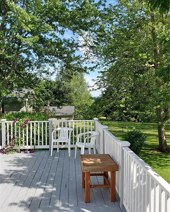 Lakeviews with a huge back yard and village living at its best! This early 1900s home has lots of original character and charm with lots of living space, including period built-ins and the original hardwood floors. This home welcomes you with a well-maintained and landscaped exterior with newer vinyl siding, a blacktop driveway and a 2 car garage. Inside you will walk into a large enclosed sun porch with views of Chautauqua Lake and a great space for relaxing with a good book or your coffee. Inside you will find 4 bedrooms, 2 full bathrooms, a large eat-in kitchen with a formal dining room, and LOTS of closet and attic space. Half of the basement has been fully finished and can be used as additional rec space or storage. The other half of the basement offers additional room for a workshop, your laundry area, as well as a walkout to the back yard. Out back you can enjoy the gorgeous backyard shaded by mature trees or from the large deck. Appliances are negotiatible
