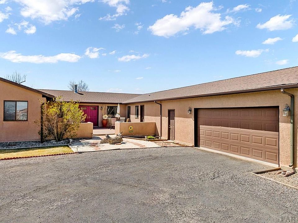 Beautiful, sprawling rancher with unobstructed Mountain Views in this split 4 bedroom design home!! As you walk in the door from the stucco walled courtyard where everyone can enjoy the mountains as you cook dinner for your guest while eating in the formal dining room or relaxing in the large family room !! This horseshoe kitchen also has a breakfast bar snd if you need more dining area enjoy the casual setting by the family room!! The primary master suite has a dressing area with vanity and walk-in closet, double sinks and a beautiful tiled, walk-in shower! There are also 3 additional large bedrooms, serviced by a nice large full bath!! The bright laundry/mud room off the garage has nice cabinetry for storage and a slop sink !! There is room for all your toys in this oversized 3 car garage with a workshop and a 2 car opening! Nicely landscaped yard with a nice big deck across the back and lots of land for your horses and outbuildings!! New furnaces in 2022 and New Septic in July 2022.. ALL FOR YOU!!!