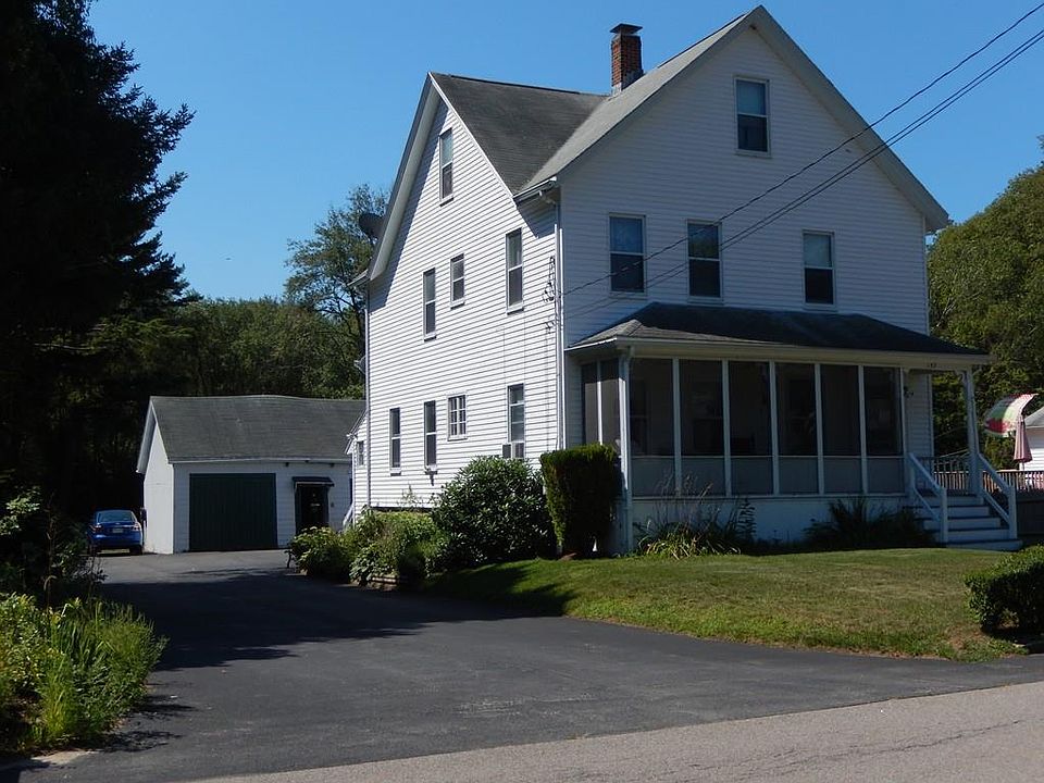 Two BR rental.......... Apartment has kitchen with gas stove, refrigerator, & pantry, plus dining space; a spacious DR w/built-ins; spacious LR and 2 BRs. Landlord is removing wallpaper in LR and one BR.......will be painting the walls. .Great neighborhood location and fabulous backyard that renters can use. Rent includes heat, hot water, trash removal and cable for internet. Two parking spaces and some guest parking included. Owner will plow driveway, but tenant needs to shovel out their cars. Good credit needed No Smoking in unit. Near commuter rail and major highways