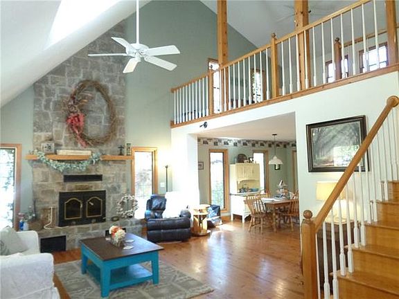 8 WOODED ACRES OFFERS PRIVACY FOR THIS COUNTRY HOME. Highlights of this 1.5 story home: 4 bedrooms, 3.5 baths, walk-out finished basement, screened porch, main level utility room, beautiful treed 8 acres, and an awesome 2520 sq ft. garage. Take a moment to enjoy the view from the front porch, then step into the entry! Once you step in you can view the massive Stone FP & pine wood floors. The spacious LV room, DR open to a covered screened porch and gives you an amazing view of the wooded lot. The Kitchen offers plenty of workspace with an island, custom cabinets & pantry for storage. Main floor Master suite opens to the wrap around porch. The oak wood stairs lead you to a loft area that overlooks the LVR, 2 spacious bedrooms & bath. A walkout basement offers a bedroom, office, bath, family room, and 2 non-conforming BRs. Many updated items: Roof 2020, water heater 2022, furnace 2021, & interior paint 2022, AC is less than 6 years