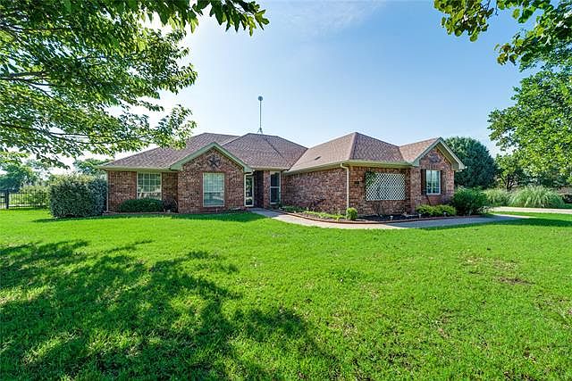 Country Living for a GREAT price! This updated beautiful ranch style home offers 4 bedrooms with 2 full bathrooms with a split bedroom layout. The property sits on over an acre and offers so many amenities such as a 30 x 40 shop with bathroom and add-on covered area 10 X 40 wired with 220, compressor, and swing boom, covered porch with pergola, above ground pool with a great deck and lights, 2 concrete drives, 10 x 40 storage shed with covered add on 12 x 28 wired with 110, landscaped, wrought iron gates and fencing, carport, HVAC replaced 2018, fireplace with a modern look, fresh paint, white cabinets, new light fixtures, and so much more. Located in Northwest ISD! This beautiful property is a MUST SEE!