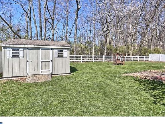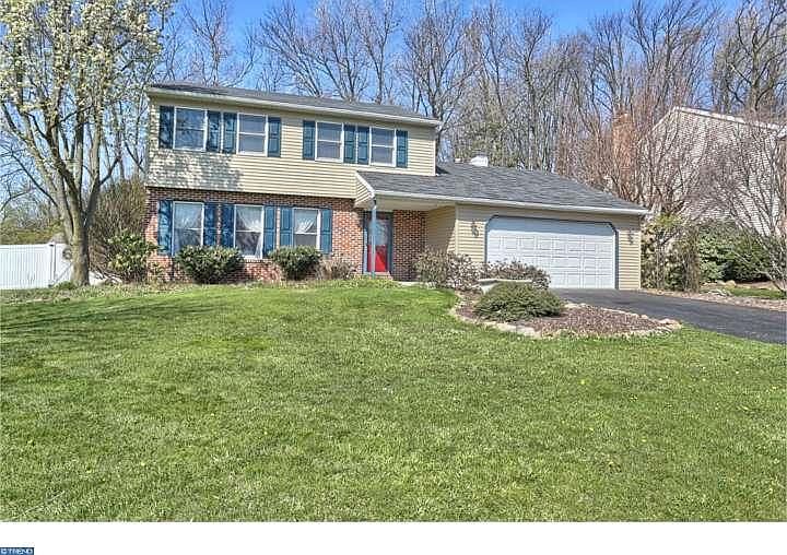 Lovely 3 bedroom/2.5 tiled bath brick/vinyl 2-story colonial with a 2-car garage backing to woods in Shiloh Hills....walking distance to the elementary school, playground and park. Super updated custom 33-handle kitchen featuring Corian counter tops, 2 skylights, tiled backsplash, butler's pantry table/cupboard, all appliances are included, and a breakfast nook with glass sliders to a rear stamped cement patio. The spacious dining area is adjacent to the kitchen. The formal living room and family room with brick fireplace have engineered hardwood floors. Plus, there is also a finished basement recreation room, along with the laundry and storage areas. The bedrooms all have great closet space and feature hardwood flooring, with the master bedroom boasting a tiled glass shower and walk-in closet. Other amenities include: a newer roof; great private landscaped .36 acre lot with fenced rear yard and a storage shed; economical gas heat and central air; and, it's ready for immediate occupancy. Don't miss this great family home!
