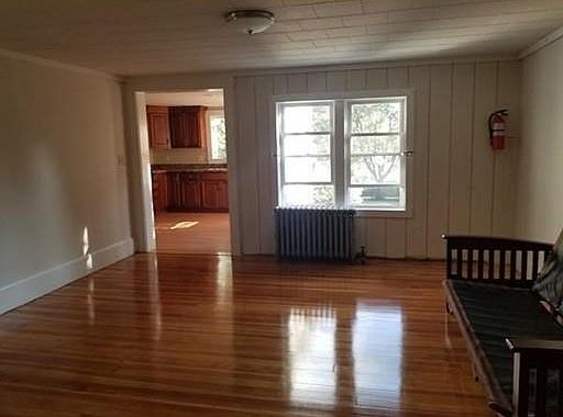 BEAUTIFUL spacious 2 bedroom 2nd floor apartment with a huge walk up bonus room in attic for play room or storage (not heated). Open floor plan with finished hardwood floors throughout! Good size eat in kitchen with loads of cabinet space. Off kitchen is a large laundry room with top of line front loader washer and dryer. Nice size living and dining room with a small room for office or nursery. Driveway with 2 parking spots that leads you to a private entrance to 2nd floor apartment. Good size back yard. Great commuter location! This rental will not last!! Call to View Today!!