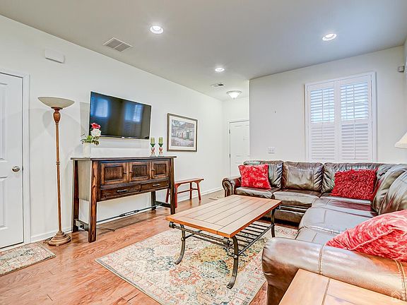 This stunning end unit townhouse, built in 2016, offers luxurious living with modern amenities. As you enter, you're greeted by beautiful hardwood floors that flow seamlessly throughout the space. The master bedroom on the first floor provides convenience and privacy, boasting an attached bath with a double vanity and a spacious walk-in closet. The main level also features a large living room and family room adorned with a cozy gas fireplace, perfect for gatherings or relaxation. The kitchen is a chef's dream, equipped with granite countertops and a convenient breakfast bar, making meal preparation a delight. Upstairs, you'll find a versatile loft space and two additional nicely sized bedrooms, providing ample space for family members or guests. Outside, a charming paver patio awaits, offering a perfect spot for outdoor entertaining or enjoying a morning coffee. Completely move-in ready, this townhouse is the epitome of comfort and style. Don't miss out on the opportunity to make this your dream home! Schedule a viewing today to experience all that this exceptional property has to offer.