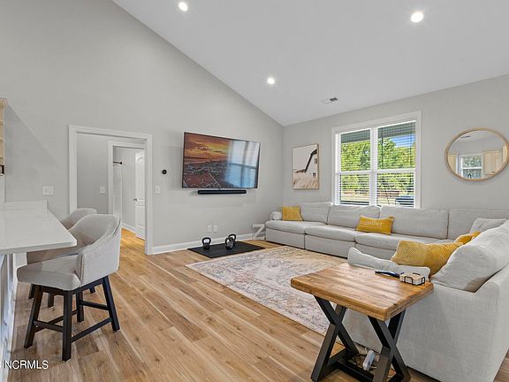 Check out this gorgeous, updated home in the highly sought-after neighborhood of Pinnacle Ridge, offering the perfect blend of modern luxury. Nestled in the Topsail school district, the home is conveniently located with about a 20 minute drive to the pristine Topsail Beaches. Step into a spacious and inviting open floor plan with soaring vaulted ceilings in the living and kitchen area, creating a bright and airy atmosphere that's perfect for family gatherings and entertaining. The interior has been thoughtfully upgraded with brand new LVP flooring and a fresh coat of paint throughout, providing a clean and contemporary canvas for your personal touch. The kitchen is a chef's delight, boasting brand new countertops and ample storage space. The master bedroom is a sanctuary of relaxation, featuring trey ceilings that add a touch of elegance. The master bathroom is a true spa-like oasis with a stunning tile walk-in shower, a dual sink vanity and a walk-in closet. Step out onto the covered back deck and discover your own private oasis. The backyard offers plenty of space for outdoor activities and is perfect for enjoying those sunny coastal days. Don't miss out on the opportunity to make this meticulously maintained property your forever home. Schedule a viewing today!