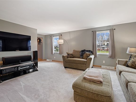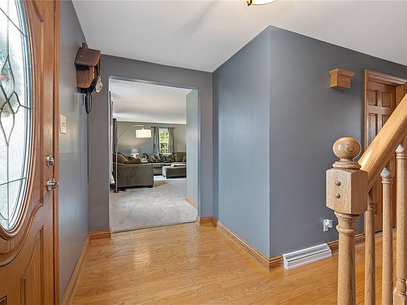 Inclusive of a home warranty, this 4 bedroom , three full bath home offers more than meets the eye. The main floor full bath has a walk in shower and roll up vanity. A warm ambiance is enhanced by a fireplace in the family room (the wood burner insert is in the shed and will be left for the new owners. The current owners have never used the fireplace). The level lot is partially fenced with a white picket fence around the patio off the family room. Easy access to the home from the attached 2-car garage. Main floor has some hardwood flooring to add warmth and style. Finished room in basement is perfect for extra entertaining space! Primary bedroom is large and has three closet spaces and attached bath. For your convenience the seller is leaving all the appliances. This home seamlessly blends comfort, style and peace of mind. Walk to the nearby park or enjoy an easy commute to Zelienople or Cranberry.....grocery shopping nearby!