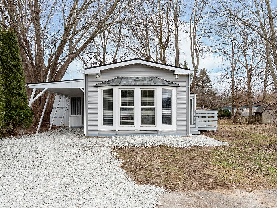Almost everything is new in this 2 bedroom 2 full bath home just blocks from Morse. Open concept great room/kitchen/dining area fireplace. Primary suite includes bathroom with oversized tub, walk-in shower, new vanity. 2nd bedroom is on the other side of the living space and has a hallway bath. Separate large laundry room with lots of cabinets. Outdoor entertainment in oversized sunroom and large deck. Enjoy all the great Amenities Cicero has to offer. Golf Cart Friendly Community, Walking Distance to Kayak Launch, Park & Downtown Cicero. Quiet lot that offers the sights & sounds of Morse Lake. Carport for parking with additional driveway parking.Lot is owned with property. NO Lot Rent. Possible Boat Dock rentals avail at Red Bridge Park. Recent upgrades include new roof, siding, gutters, new furnace and air conditioner, update electrical, etc/