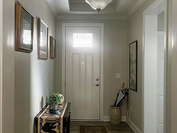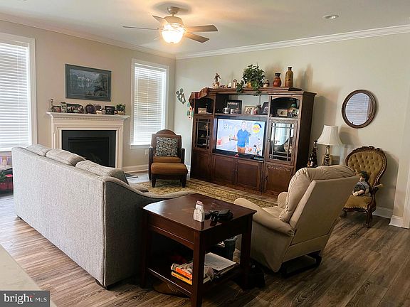Get ready to enjoy this nearly new home in the active adult community of Nobles Pond. This home offers a great floor plan. As you walk into the dramatic entry with a 10' tray ceiling and crown molding you know this home just may be the one. Home features include an open floor plan with a great room and a beautiful kitchen with quartz counters, an L-shape walk-in pantry, beautiful 42" cabinets, and a kitchen island with an overhang perfect for bar stools. There is a screened porch off the cafe area with a high ceiling and ceiling fan and recessed lighting. The split floor plan provides added privacy when guests visit. Spacious primary bedroom suite has walk-in closet, tray ceilings, fan, and beautiful bathroom with 60" high top double vanity, walk-in shower, and private commode area. There is a room set up as a private office but certainly could be converted to another room design. Upgraded plank style flooring, 5 ceiling fans, gas fireplace with mantel all add to the desirability of this home. No need to wait for new construction, this 3-year-old home is ready for you.