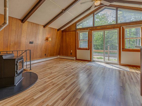 .50 +/- Acres with immaculate Chalet just minutes to Cannon Mountain Ski Area and Franconia Notch. Nestled in a small neighborhood in the heart of a ski town, chalet offers an idyllic retreat for outdoor enthusiasts. A haven for adventure seekers with passion for skiing, biking, hiking, and outdoor lifestyle. Main floor - kitchen, dining and living area with an open concept. The slider affords the space lots of bright daylight and the pellet stove will offer toasty warmth after a day of playing in the snow. Also, 2 bedrooms and a full bathroom on the main floor. Downstairs - 2 additional large rooms making for great in home office, family room exercise or more sleeping, 2nd bathroom and utility room too. With two large storage sheds on the property, there's ample room for stowing away the sports gear, tools, and equipment. Whether you're a hobbyist, DIY enthusiast, or in need of extra storage space, these sheds are well-suited to accommodate a variety of needs, from workshops to projects and everything in between. If a primary home you'll have room to garden and after a day of puttering in yard you can rinse off in the outdoor shower! Franconia is renowned for its great schools, come experience the warmth of small-town living with like minded people. Whether you're hitting the slopes in winter or exploring scenic trails in summer, this chalet offers the perfect base for enjoying all that our area has to offer. Let the memory making begin!