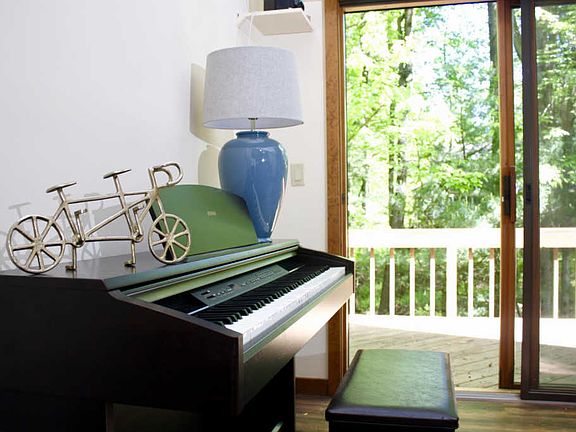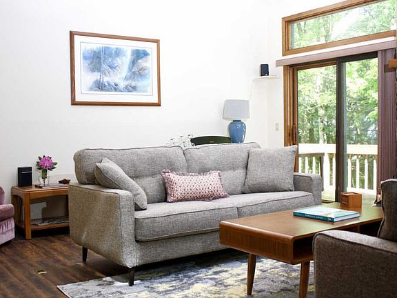 THIS LISTING IS UNDER CONTRACT. BACK-UP OFFERS ONLY. This home is located on a quite street, surrounded by beautiful greenery. It is within walking distance to the main beach, clubhouse and outdoor pool. Enter through a large, newly tiled hallway into a bright and spacious living room with a wood burning fireplace, 2 story vaulted ceiling with sky lights, and 2 sliding doors leading to large outdoor deck. Relax in a bright sun room with vaulted ceiling and 5 windows, with a door leading to rear deck. 1st floor has 1 full bathroom, 2 bedrooms, mudroom, dining room and large kitchen with new granite counters, backsplash, and stainless appliances. 2nd floor features a loft overlooking the living room, 1 full bathroom and 2 bedrooms with vaulted ceilings.