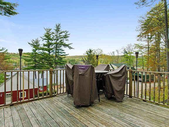 Charming, super cozy Seasonal Get-Away that has been updated with Vinyl Siding, new Windows & new Flooring. This home is located close to the end of the dead-end road but only a mile from the heart of Alton Bay. Great views of the Bay from all levels. On the main level youll find the kitchen, dining area, living room along with two bedrooms and 3/4 bathroom. Theres a great Deck for relaxing and grilling right off the kitchen and overlooking the Bay with all its activities. Theres a little cat-walk to the back yard where you can toast marshmallows and watch 4th of July fireworks.
