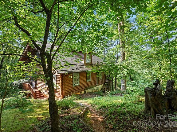 Beautiful & well loved log home on 4.96 wooded acres, with gorgeous waterfalls & stream. Fenced areas for animals, wood working shop & another building that could be used as an office/art studio/apt with the addition of a bathroom. The house has a main level bedroom with full bath, upstairs is a loft that could be closed to make an additional bedroom, full bath upstairs. A finished half basement with inside/outside entrance. There is also a woodstove and propane that supplies the stove and gas heaters. There is a two bedroom septic permit on file.