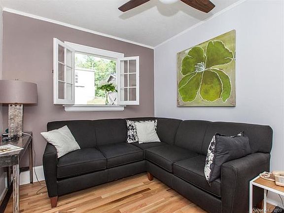 Enjoy front porch living in this modern farmhouse located on a large corner lot, minutes to downtown Asheville and Blue Ridge Pkwy. This home features custom kitchen with high ceilings, designer appliances, farm sink and additional convention oven. Pass-through kitchen to dining server. This total renovation includes updated electrical, plumbing, and flooring. Custom designed wide concrete driveway. Old world charm with a modern flair shows in special details throughout this home, including casement windows in kitchen and den area, beautiful hardwood floors, and arched doorways. Located in the county with possible short term rental potential. You will be thrilled to see this very unique country gem.