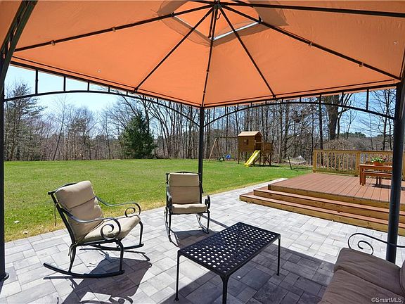 Elegant home situated in a desirable, convenient location in beautiful Woodstock, CT. The home boasts 4 upper level bedrooms and 2 1/2 baths, including a wonderful master suite. The main level features hardwood floors throughout, an open kitchen and living room with a fireplace, a large family room and formal dining room. You will love the large private back yard containing a huge shed, new composite decking and new stone patio Oversized 2 car garage. Mechanicals include a generator and all appliances. Convenient to shopping, restaurants and schools. Please visit this wonderful home.
