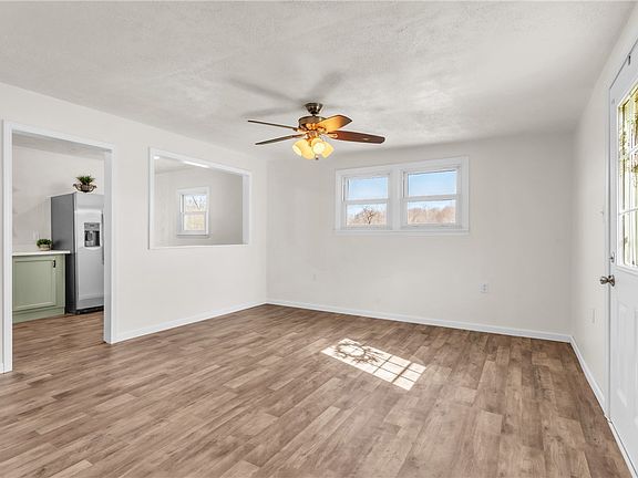 Experience country living at its best in this charming ranch home, nestled on 5 picturesque acres in Slippery Rock School District. A perfect blend of cleared land and mature trees offers both space and privacy, all while being conveniently close to I-79 and Route 422. This move-in-ready home features three bedrooms, a spacious dining room, a living room, and a well-appointed kitchen. Beautiful hardwood floors and new laminate flooring flow throughout, complemented by fresh paint and newer windows. Enjoy the ease of one-level living with a full basement for extra storage or potential expansion. Step outside onto the large front deck and soak in the peaceful surroundings—your perfect retreat from the everyday hustle! 15 min to Slippery Rock 15 min to Portersville. Minutes from Moraine State Park.
