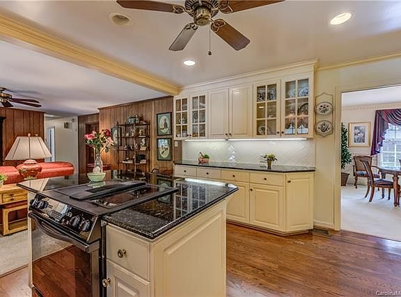 Beautiful updated 4 BR, Full Brick Ranch situated on .47 of an Acre. Lots of upgrades include a spacious Kitchen with granite counters, under cabinet lights, tile backsplash, wood floors, new Dishwasher and an island Bar. Kitchen opens into the Den with a Gas Fireplace. Lovely updated Full Bath with neutral tiled Floors, Shower/Tub and custom Cabinet.New 2017 HVAC and Newer pump for the outdoor in-ground pool. Enjoy entertaining with a covered patio and brick terrace overlooking the pool and fenced backyard. So close to uptown Charlotte, I-485 and the Charlotte Douglas International Airport.Home Sold As-Is.