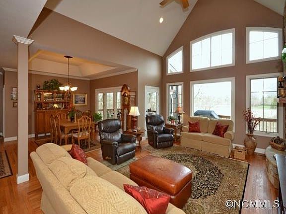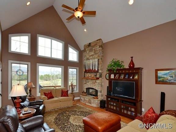 SPECTACULAR MOUNTAIN VIEW! From this home that was designed for today's lifestyles! The great room with cathedral ceiling, stone fireplace and magnificent windows welcome you to this open and light home that sparkles! The dining room flows into the great room and walks out to the screened porch and expansive deck that are ideal for relaxing with friends and family. The adjoining kitchen with island, granite counters, stainless steel appliances and abundant cabinets is well suited for one or two cooks to do meal prep. The inviting main level master suite has a luxury bath with split vanities. A second main level suite with walk-in closet could be a 2nd master or study. The lower level is highlighted by a large , bright game/media room, lovely guest suite and a 4th bedroom, plus access to the custom patio, planters and steps to the upper patio and hot tub. This special property is bordered by a beautiful flowing stream!