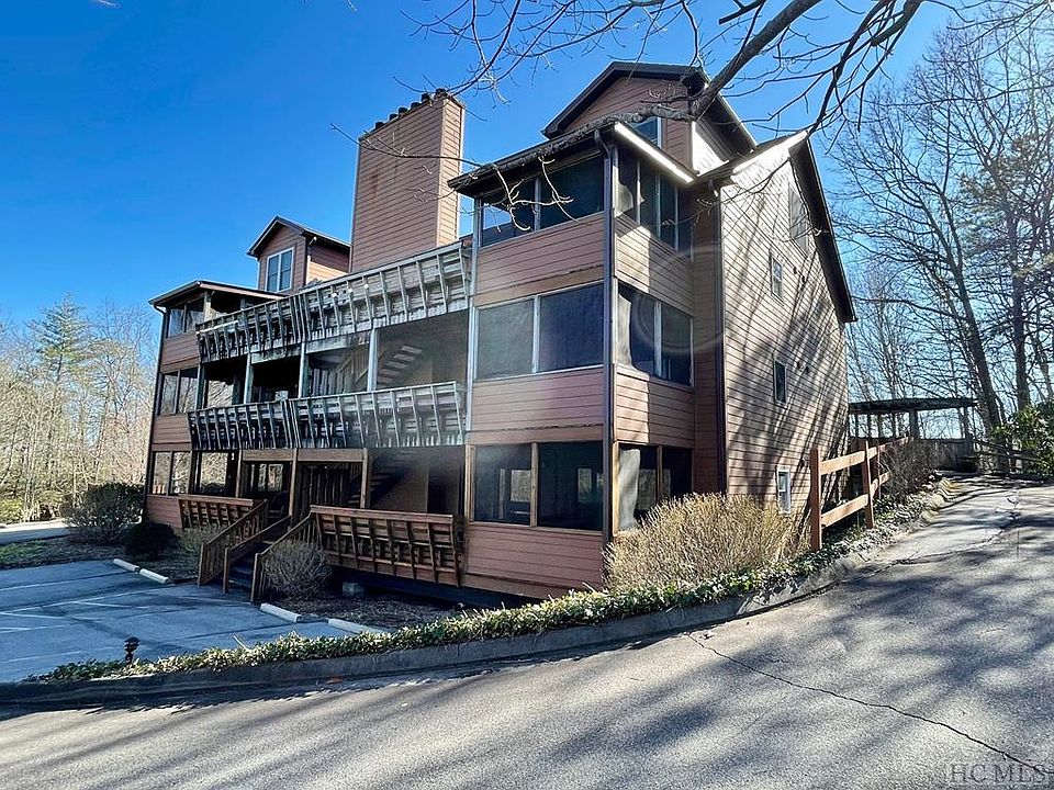 Conveniently located between Brevard and Cashiers, this 2 Bedroom, 2 Bath Condo is in wonderful condition. Move right in!! All on one level. Open living room/dining room with stone stacked fireplace. Sliding glass doors open to the screened in porch to enjoy the gorgeous magnolia tree with its majestic blooms and mountain top views. 2 Open decks, one off the living room and one off the master bedroom are perfect to swing and feel the mountain air. Lots of storage. Plenty of parking. Community has a great pool/waterfall to enjoy. If you are a hiker, this is a perfect location to hike in Gorges State Park.
