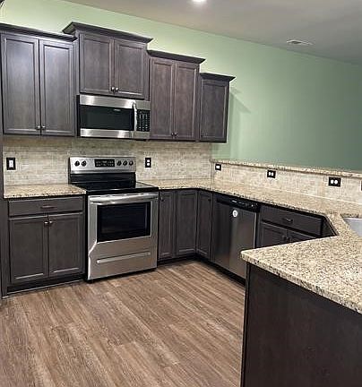 SHORT TERM RENTAL This like new 4 bedroom 3.5 bath home has everything you are looking for. This home sits on a large lot with a communal wooded area behind the fenced in yard. Two car garage with an extra parking pad. Covered front porch and covered back extended patio. Kitchen with a breakfast bar, Great room with a gas fireplace, formal dining room, Half bath and a mud room off of the garage. There are two owner suites, one downstairs and one upstairs both have large bathrooms with oversized bath tubs, separate showers and walk in closets. All bedrooms have large walk in closets. Laundry room located upstairs with a large storage closet. There is plenty of storage space in this gorgeous home.