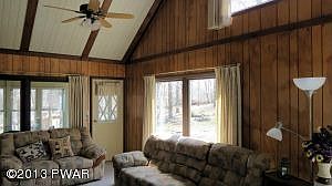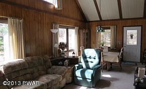 LOCATION...LOCATION...LOCATION! This country chalet is conveniently located only 2 miles to Promised Land State Park and 8 miles to the popular Lake Wallenpaupack. Boating, fishing, hunting, skiing, golfing and swimming are other local area attractions. This home boasts of a kitchen with plenty of cabinets and newer appiances, generous storage space throughout, 2.5 car attached garage on almost an acre of privacy! ATVs are enjoyed in this development with private access to State Land.