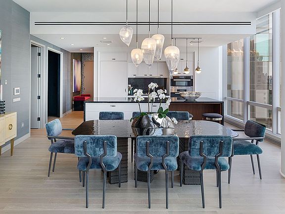 Additional features include a state of the art multi zone climate control system offering individual comfort in each room. 34F is outfitted with Smart Home technology, Lutron motorized blackout shades in all bedrooms, solar shades in the living room, customized closets, and a Miele washer/dryer, ensuring convenience throughout.