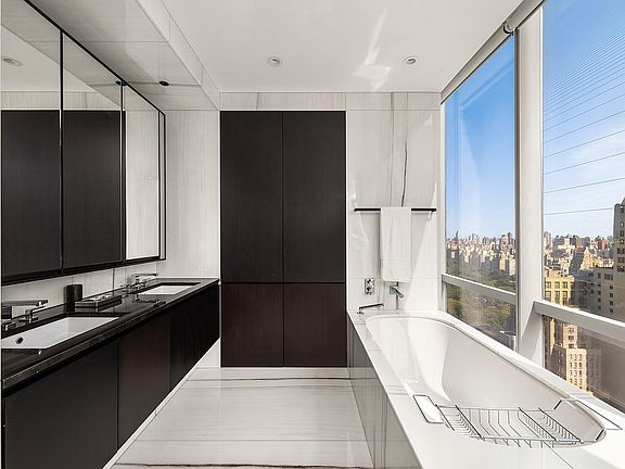 Manhattan's New Crown Jewel, One 57 Condominium has been heralded as NYC's most prestigious address. One 57, designed by world renowned and Pritzker Prize winning architect Christian de Portzampar, defines the ultimate in luxury living. Located in the heart of the city on the premier 57th street corridor this new iconic tower sits steps away from Central Park and the most celebrated cultural and entertainment venues, restaurants and exclusive shopping in the world. Soaring above Manhattan, this spectacular three bedroom, 3.5 bath residence, 2,525 s.f., defines a new era of luxury living in New York. Glorious direct views north into Central Park with additional south & east exposures form the backdrop of this well designed space. Enter into a gracious foyer with a floor to ceiling window that frames the park and leads to a Great Room measuring nearly 34 by 19 feet offering amazing city and Central Park vistas. The open Chef's kitchen is beautifully appointed and ready to entertain with a center island with built-in seating, professional appliances and direct external ventilation by Miele and sub-zero as well as handcrafted custom cabinetry by the award winning Smallbone of Devizes. The Master Bedroom offers south and east exposures, a huge walk-in closet and en-suite bath finished with an extra deep jacuzzi soaking tub, custom wood vanity with under mount sinks topped by Nero Voda marble, recessed medicine cabinets with side LED lighting, radiant floor heat and walls of Italian Statuario marble slab and Dornbracht / Graff fittings and fixtures. Bedrooms two and three also offer en-suite baths with a custom vanity, an undermount sink topped with white quartzite, recessed medicine cabinets, Bianco Dolomite marble floors and walls, and Dornbracht/ Graff fittings and fixtures. An elegant powder room off the entry foyer has a vanity clad in polished black granite with a black glass integrated sink, Dornbracht faucet and white onyx slab floors and walls. Opulent Interior features by Danish designer Thomas Juul-Hansen include: 10'8" ceiling heights, floor to ceiling sound proof windows, solid rift sawn oak ebony floors and a state of the art, multi zone climate control system with discreetly designed vents and linear diffusers providing year round heating and cooling for each room. One 57 provides an unparalleled level of service including the following amenities: 24 Hour Doorman/Concierge, Private Dining & Function Room, Full Catering Kitchen, Library with Billiards Room and 24 foot Aquarium, Arts & Crafts Atelier Room, Screening and Performance Room, Private Fitness Center and Yoga Studio, Discreet Additional 58th Street Entry, On-Site Parking Garage, Pet Wash Room. In addition, One 57 residents have access to all the services of the Park Hyatt Hotel with direct access by elevator to the Hotel's Triple Height Indoor Swimming Pool, Spa, Steam Rooms, Custom designed Jacuzzi and Spa Portico and fifth floor Bar and Restaurant. To reach the pinnacle of gracious living, the bar has definitely been raised.