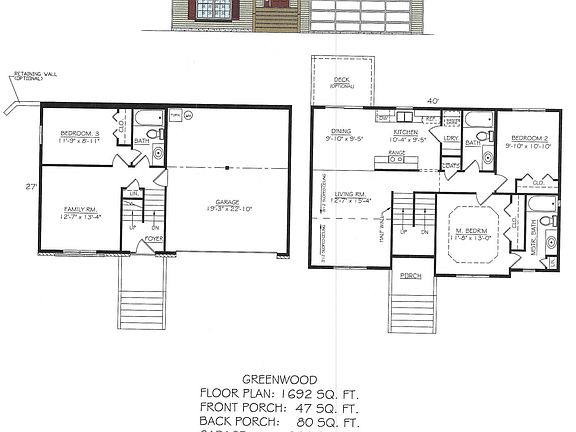 Greenwood Split level - 3 bedroom, 3 bathroom, 2-car garage, 1692 sq ft. This home has the master suite upstairs and one bedroom next to it, with the 3rd bedroom downstairs. The living room will have a vaulted ceiling. Downstairs will have a family room. The kitchen includes a double bowl stainless steel sink, electric stove, microwave, and dishwasher. This home will be constructed in the Smoke Tree Hills subdivision in Kirbyville.