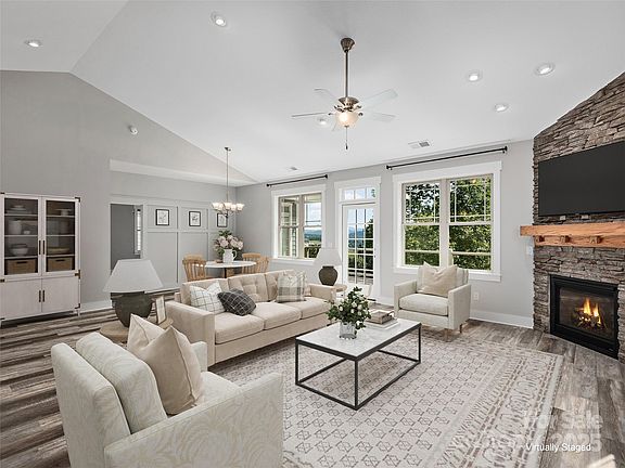 Beautifully crafted 3 bedroom, 3 bathroom Arts & Crafts home in the gated community of Pinnacle at Arabella Heights. Enjoy main-level living with open floor plan, vaulted ceilings, gas fireplace, and large windows framing long-range mountain views. Gourmet kitchen with granite counters, large kitchen island, stainless appliances and pantry. Luxurious primary suite with double vanity, spacious shower, walk-in closet and access to private back deck overlooking stunning views. Low-maintenance lot with HOA-included lawn maintenance. Community amenities include clubhouse, fitness center, pool, and trails. All just minutes from Biltmore Park and downtown Asheville.