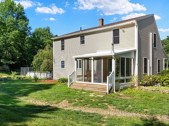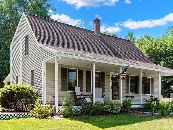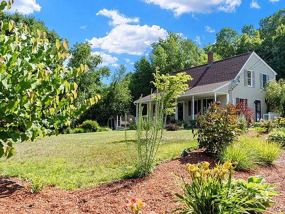 Fresh air and peace and quiet...so relaxing!! This fantastic 3 bedroom, 1.5 bath, Cape style home offers many updates. The front farmers porch is just where you want to be on a warm night. It connects to a huge patio and outdoor grilling area and has an enormous yard for fun family activities. There is a large open kitchen with newer appliances, loads of cabinets, counter space with counter seating and open eating area. Off the eating area is an enclosed porch with pellet stove. There is a living room and family room, one of which could offer a first floor bedroom. The main bedroom is incredibly large with lots of closet space and sitting/office area. There are two additional bedrooms and full bath. The basement has very high ceilings if someone wants to finish it. Enjoy Breezeland Orchards, Ragged Hill Cider Company, lakes, rivers and walking trails and close proximity to Old Sturbridge Village and Main Street restaurants including The Salem Cross Inn.
