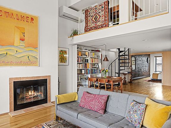 With 15-foot ceilings, two spacious bedrooms, PLUS A HOME OFFICE, a working WOODBURNING FIREPLACE, stunning Manhattan skyline views, and over 1100 square feet of PRIVATE ROOF RIGHTS to build your dream deck, this beautifully renovated, Clinton Hill loft has remarkable proportions and tons of character.