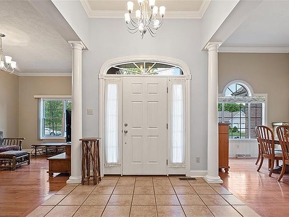 Enjoy single-level living in this immaculate custom-built 4 bedrm 4 bath home!Bright foyer with ceramic tile flooring, crown molding, dramatic columns & 10' ceilings that carry throughout the home.Spacious LivRm w/gleaming H.W. floors & corner fireplace! Enviable custom eat-in kitchen features plentiful cabinetry,w/soft close drawers,granite counters, tile floor, Many new updates including: gas JennAir range w/electric oven, range hood, warming oven, Bosch dishwasher.Butler's pantry w/reverse osmosis & ice maker.Enjoy holiday meals in your formal D.R. Expansive Master features private access to rear deck, tray ceiling, with it's spa-like atmosphere including jetted tub! The second BdRm is a junior Suite! Updated first floor laundry. Walk-out lower level w/huge game room. Large storage area under garage. New hot water tank. Trex-like decking on covered porch with 2 ceiling fans/lights overlooking park-like rear yard w/ perennial plants,& new shed.Wholehouse filtration system.