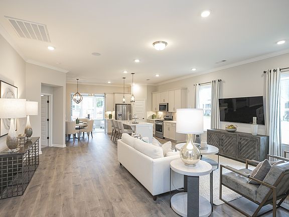 3 BDR and 3 full bathrooms with morning/sunroom, 10' ceilings and hardwood floors, quarts or granite, tiled shower. Two bedrooms down! Amazing pool and amenities to come. Yard work and exterior maintained by HOA .