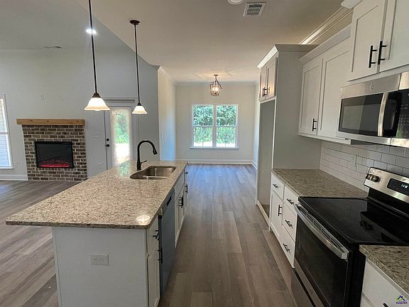 Beautiful 4 bedroom 2 bathroom new construction perfectly placed on the end of a cul-de-sac with almost an acre of property. Side entrance 2 car garage gives great curb appeal. Come schedule a viewing of this property today and see the beautiful open kitchen with granite countertops, eat-in-kitchen with a large island perfect for entertaining over looking into the open living room with an electric fireplace to set the perfect mood for any occasion.