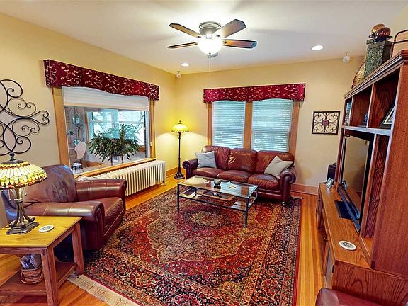 Show-stopping 2 story home in pristine condition, with an abundance of character and charm. Kitchen features lots of Cabinets, Corian counters, eating bar and newer appliances. French doors between formal dining and living rooms. Front porch/sun room adds an additional 270 sq ft to main floor living area. Spacious bedrooms with walk-in closets. Large 12X15 upstairs bath with double sinks and onyx tops, 3X5 tiled walk-in shower, separate jetted tub and walk-out deck. Fully finished walk-up attic. Beautiful woodwork throughout. Expertly landscaped fenced yard with patio area and storage building. South fence jointly owned with neighbor. Peerless high efficiency boiler for heat, heat pump and air conditioner for cooling. RO included. Floor rugs are not included.