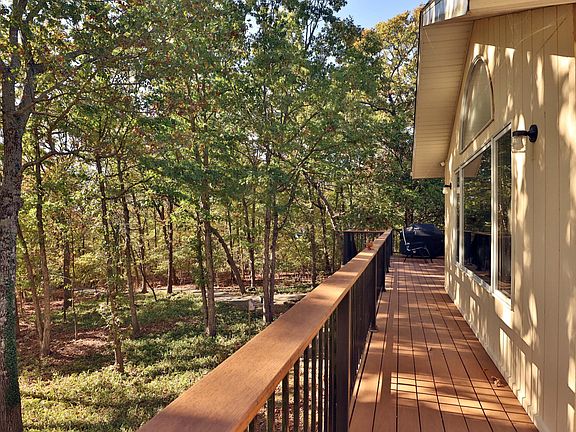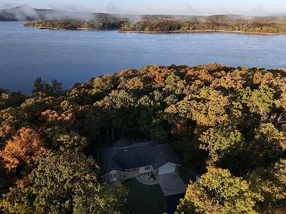 This extremely private and secluded 4 bed 3 bath house sits on Table Rock Lake in Lampe, Missouri. Enjoy sunsets from the westward facing deck that spans the entire rear of the house and looks out to the lake. A walking path leads down through the forest to the water. The home also features a sunroom, two living areas and a John Deere room and the attached 2 car garage including an extended shop area. The 2.5 acre lot also has a 30x32 fully insulated shop (with 220 electric) as well as a 12x28 storage building.