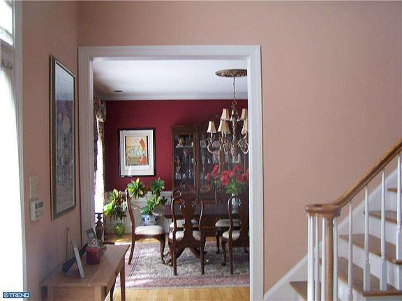 This exquisitely maintained center hall colonial in sought after Leedoms Field of Lower Makefield features two story foyer and open stair case to the 2nd fl. The foyer opens on both sides to a spacious and elegant dining rm. and living rm. (presently a billard rm.) with French doors to a lovely piano rm. /office. The spacious center island eat-in kitchen has high-end cherry cabinets and granite countertops. The large family rm. has a semi-cathedral ceiling and stone fireplace. Upstairs level has a elegant large master suite adjoining sitting area, his/hers walk-in closets and master bath with Jacuzzi tub, separate shower and private toilet. This level also includes 3 large size bd. rm. with a separate and hall bath. A large well-designed open finished basement could be a play rm. or entertainment for adults. It also includes a home gym and large storage area. Other features includes central security system, central Vacuum systems and built in stereo speakers on the 1st level and master bd. rm. suite. The grounds have been professionally landscaped and is bound by preserved farmland in the back and raised paved patio off the Kitchen.